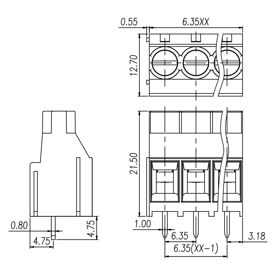 | 间距 Pitch | 6.35 mm | ||