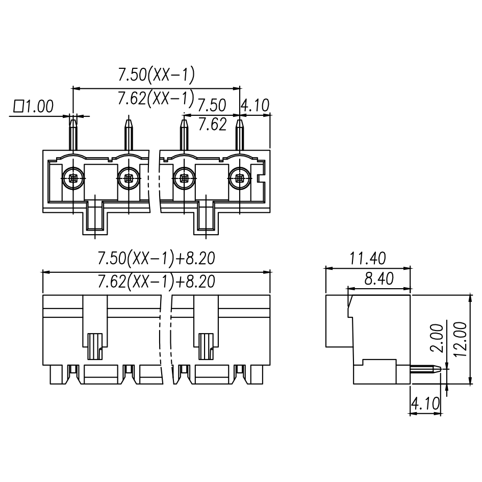 | 间距 Pitch | 7.5 mm/7.62mm | ||