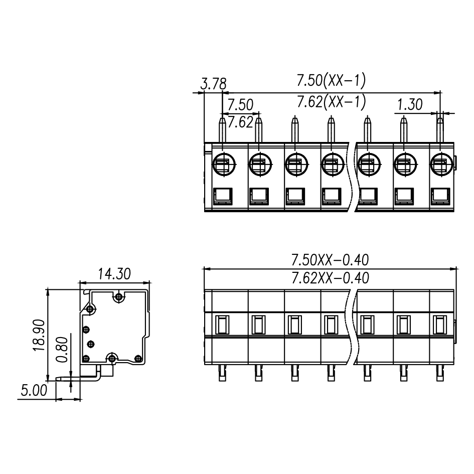 | 间距 Pitch | 7.5 mm/7.62mm | ||