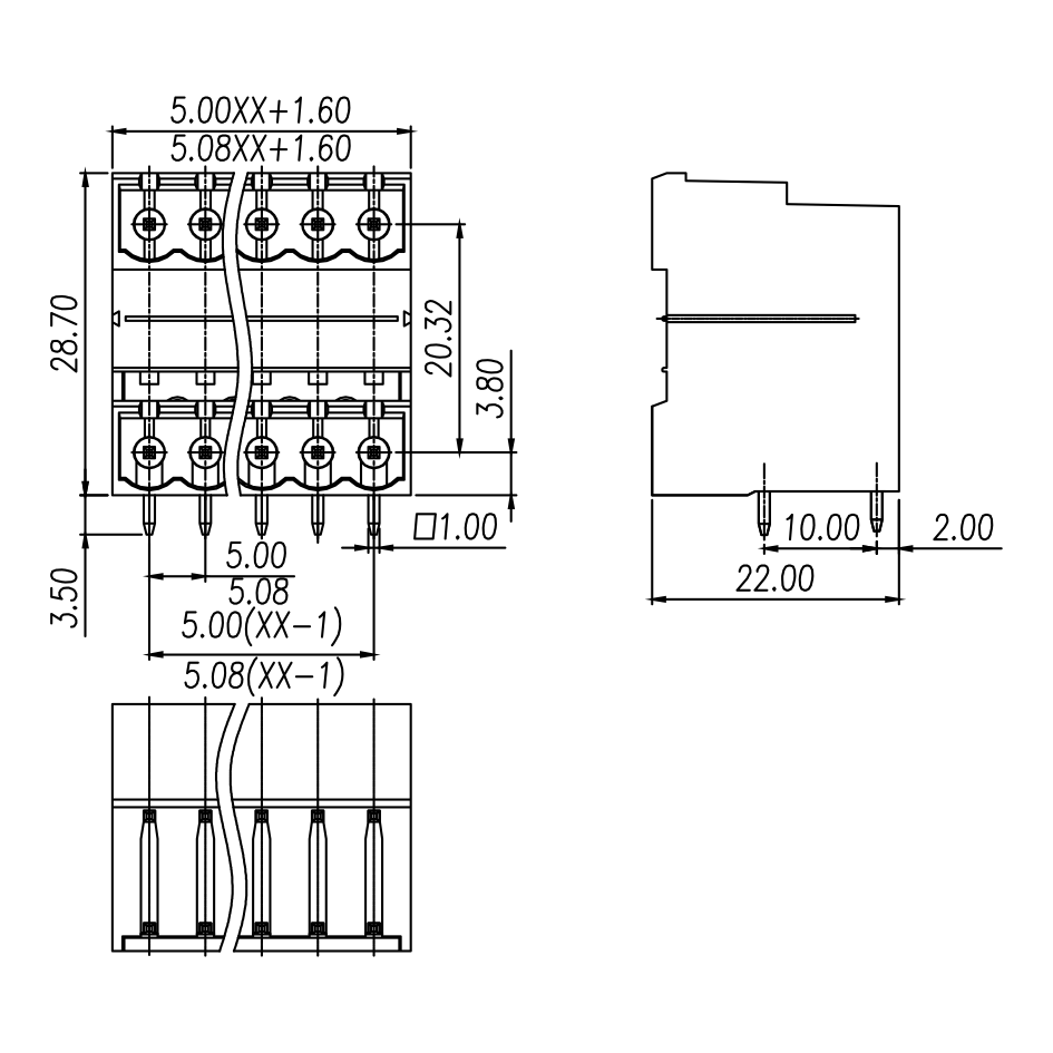 | 间距 Pitch | 5.0mm | ||