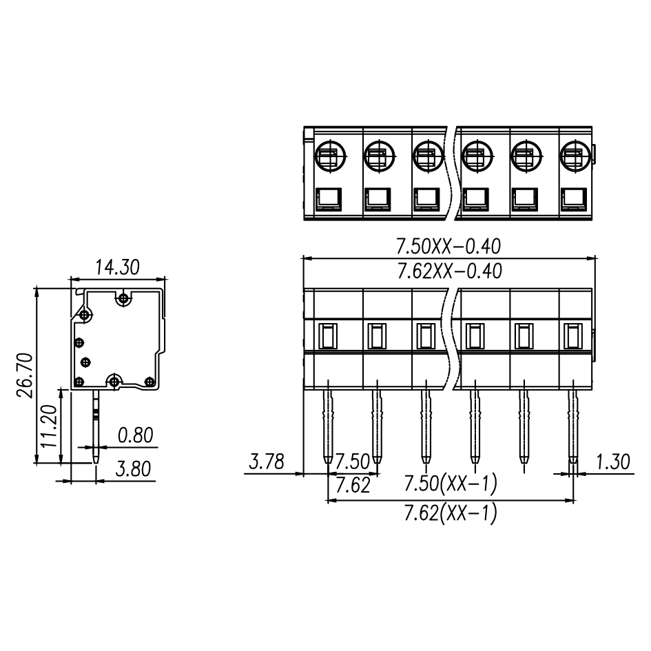| 间距 Pitch | 7.5 mm/7.62mm | ||
